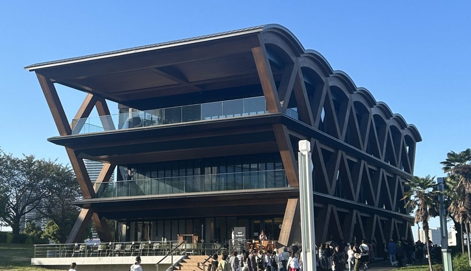 デザイナーさんがデザインした建物のようで、木を基調とした温かみのある特徴的な外観でした!💭