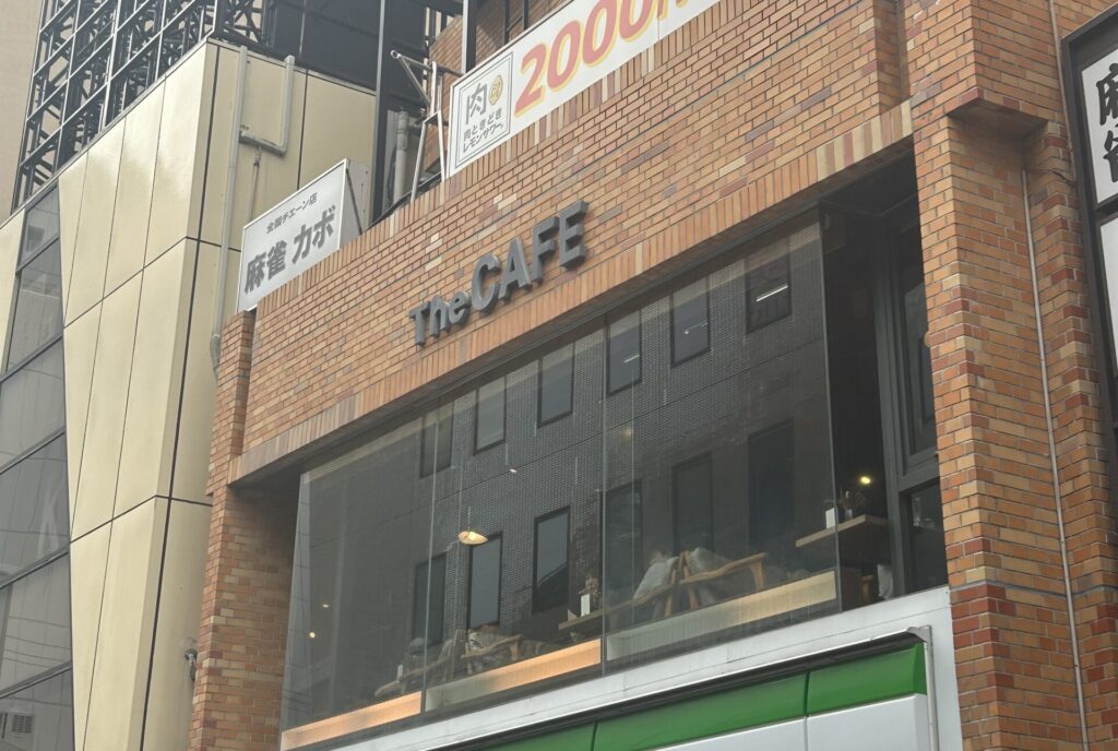 奥にあるお店への階段を上ると、黒の落ち着いた色合いの扉に白い文字で描かれた「The Cafe」の文字が見えてきます。